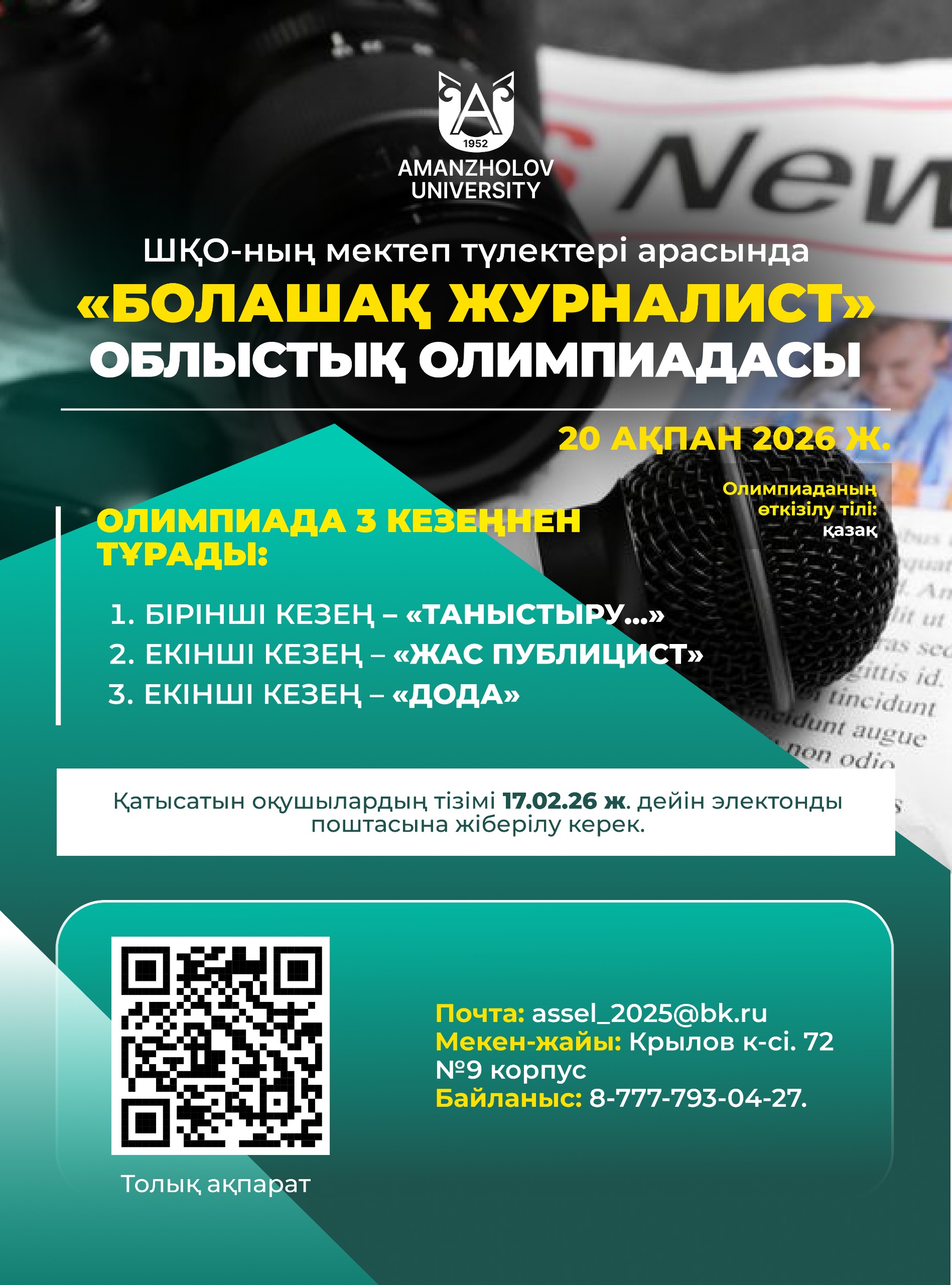 «БОЛАШАҚ ЖУРНАЛИСТ» ОБЛЫСТЫҚ ОЛИМПИАДАСЫ