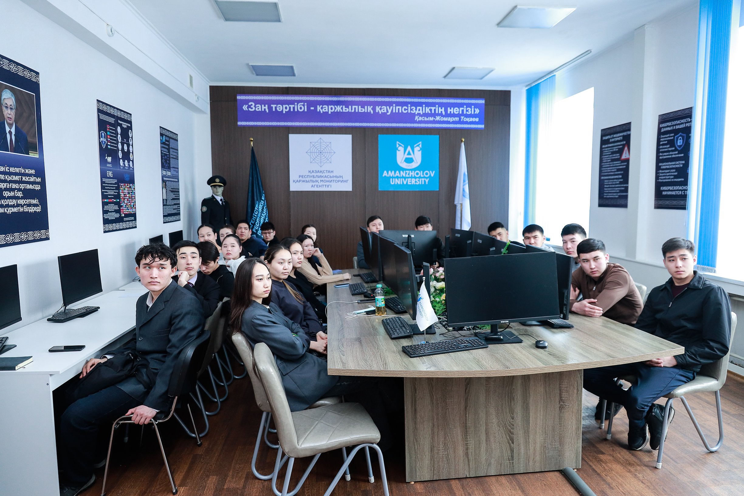 В Восточно-Казахстанском университете имени Сарсена Аманжолова состоялась содержательная лекция для студентов второго и  третьего курсов образовательных программ «Юриспруденция» и «Информационные системы». Лекцию провёл сотрудник Службы экономических расследований Агентства Республики Казахстан по финансовому мониторингу, оперуполномоченный по особо важным делам (дознаватель), полковник Асхад Кубашевич Каусов.