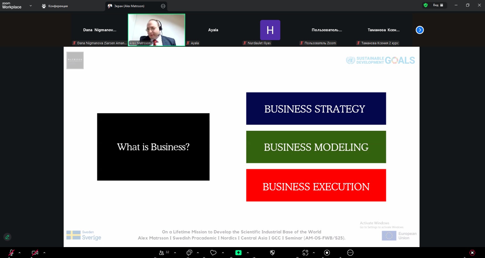 Алекс Матрессон академиялық тәжірибе мен нақты бизнес көшбасшылығының ерекше үйлесімімен халықаралық деңгейде танымал. Ол алғашқы сәттен-ақ тыңдаушыларды баурап алды. Оның әңгімелері IKEA мен Volvo Group сияқты швед компанияларының, сондай-ақ Kaspi, Happy Cake, Shoqan, QazaqRepublic сияқты көптеген қазақстандық компаниялардың тәжірибесіне сүйенді және әлемнің басқа елдерінен мысалдар келтіріп, студенттерге практикалық даналыққа негізделген кең көзқарас ұсынды.