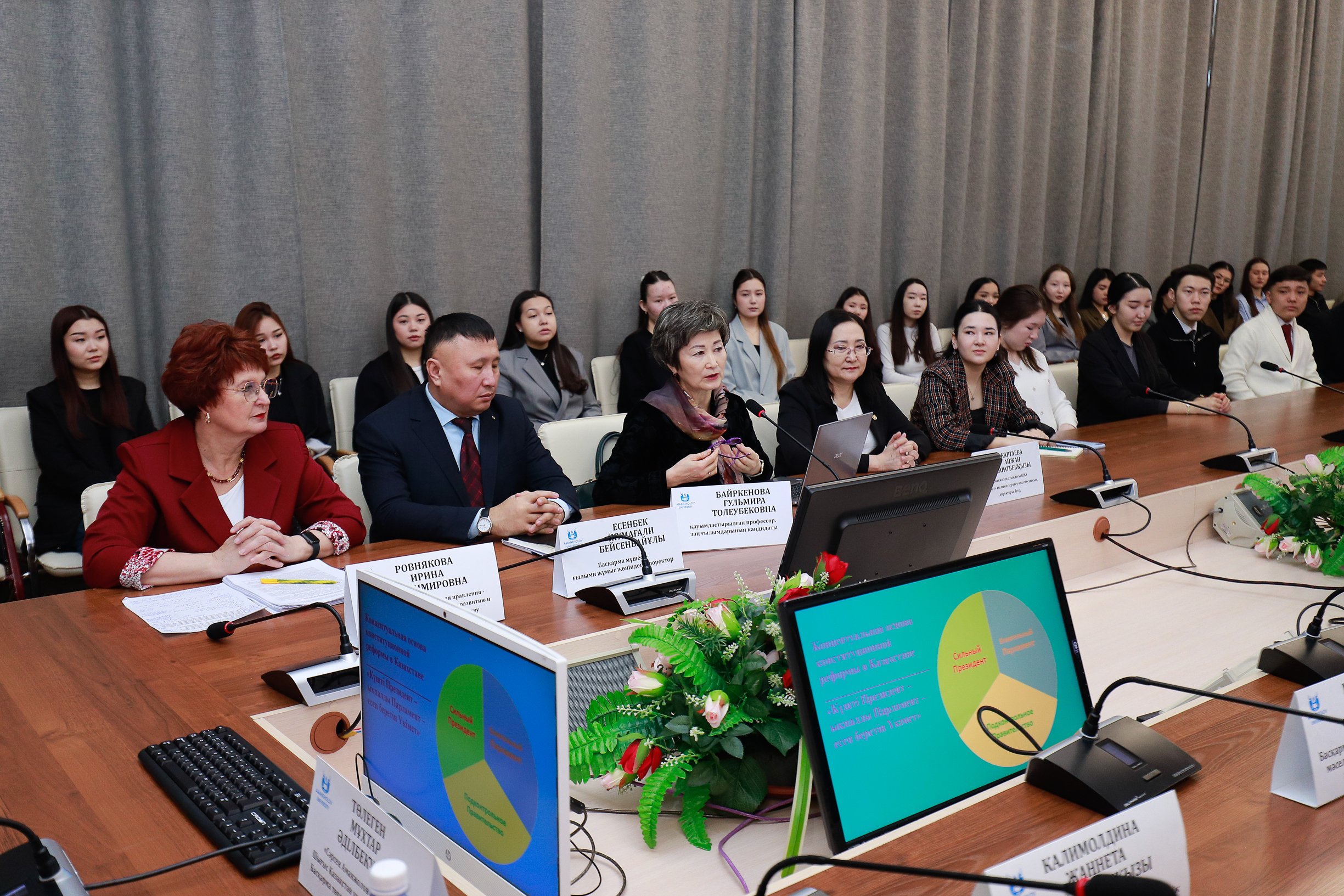 The main objective of the event was to familiarize students with the upcoming constitutional reforms and to enhance their legal literacy. Rector Mukhtar Tolegen emphasized the importance of the draft Constitution in clarifying the rights and responsibilities of citizens, as well as improving the effectiveness of public administration. Participants also received detailed answers to their questions.