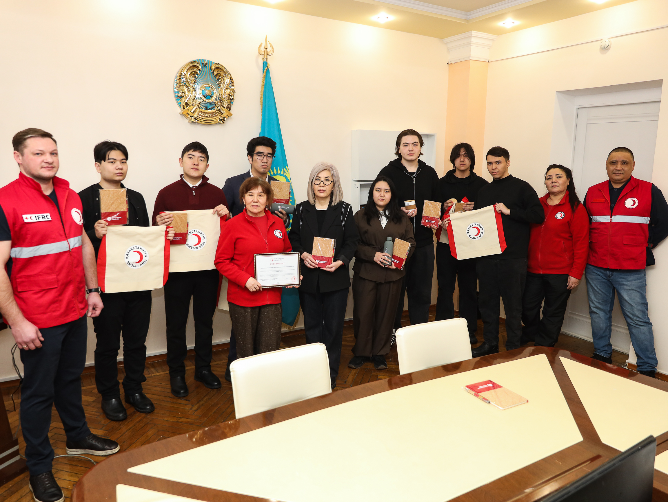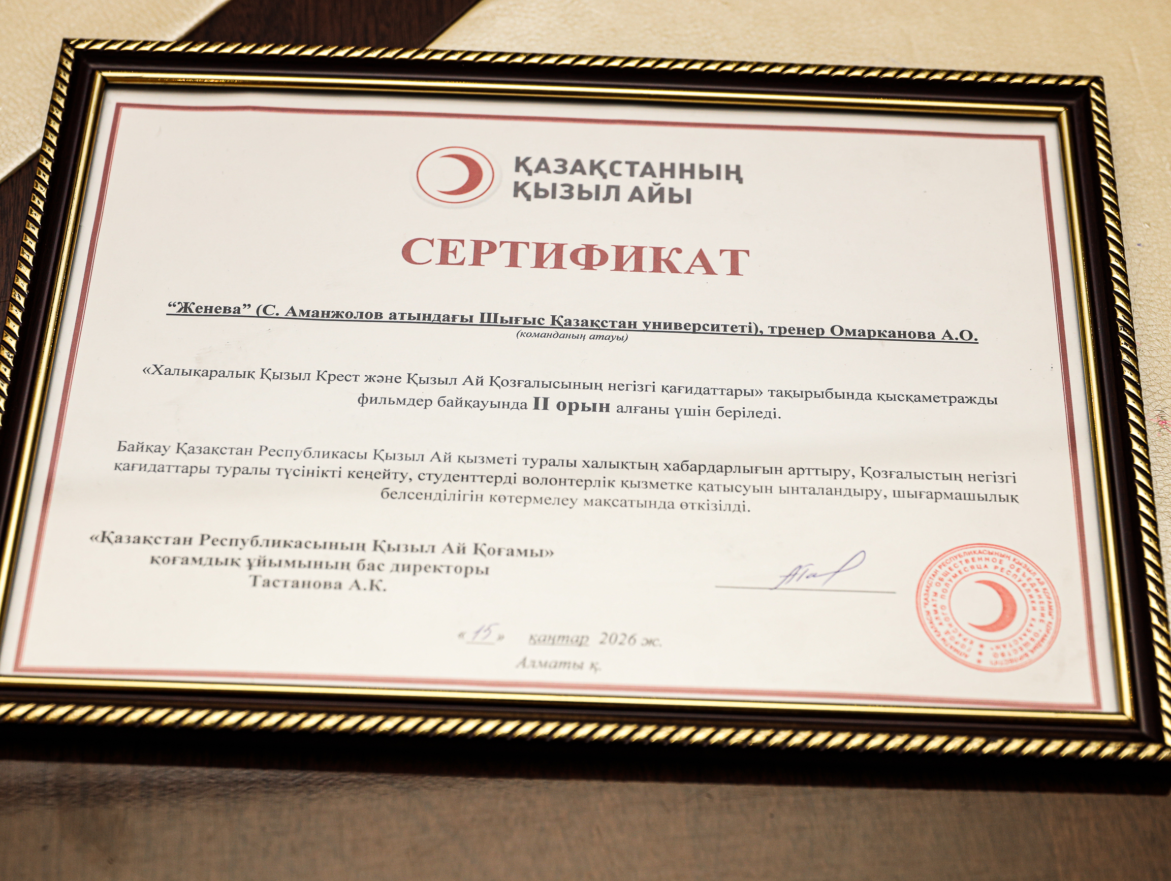 As part of the event, the results of a national video contest were announced. The contest aimed to raise awareness of the activities of the Red Crescent Society of the Republic of Kazakhstan and its fundamental humanitarian principles. According to the results, the “Geneva” team—students of Amanzholov University—won an honorable second place.