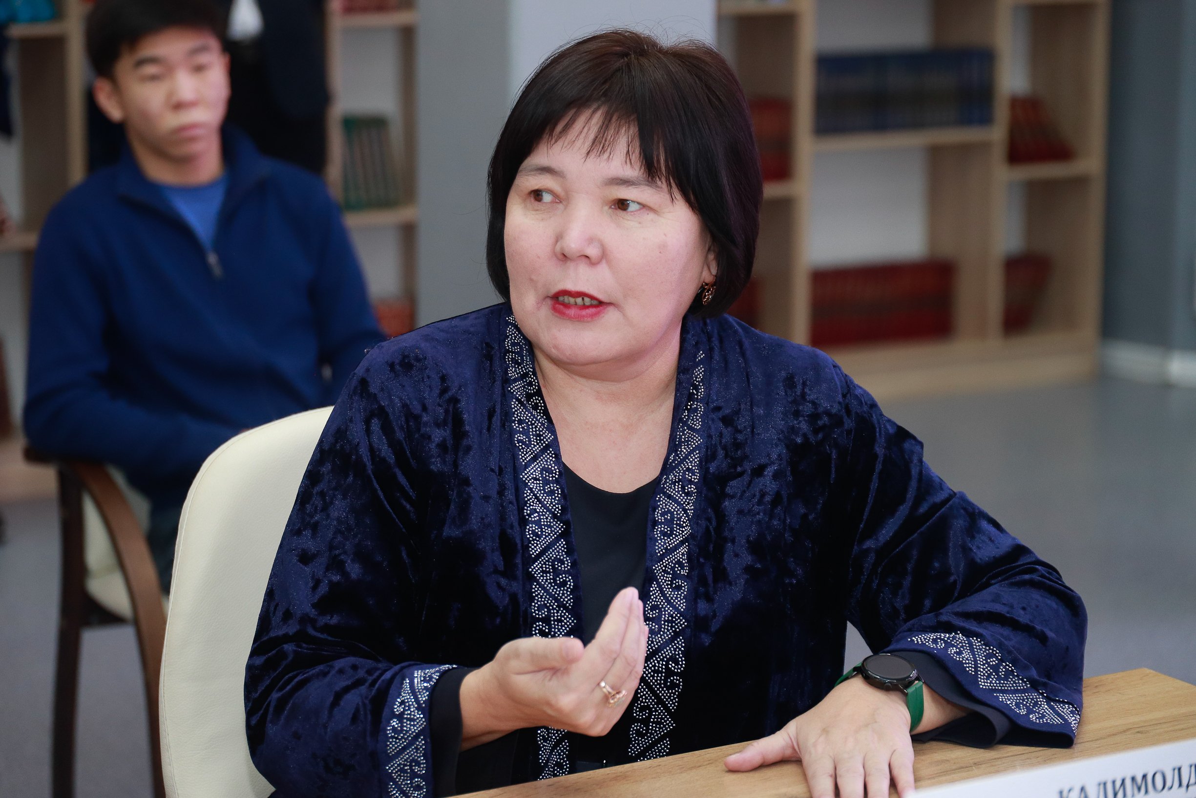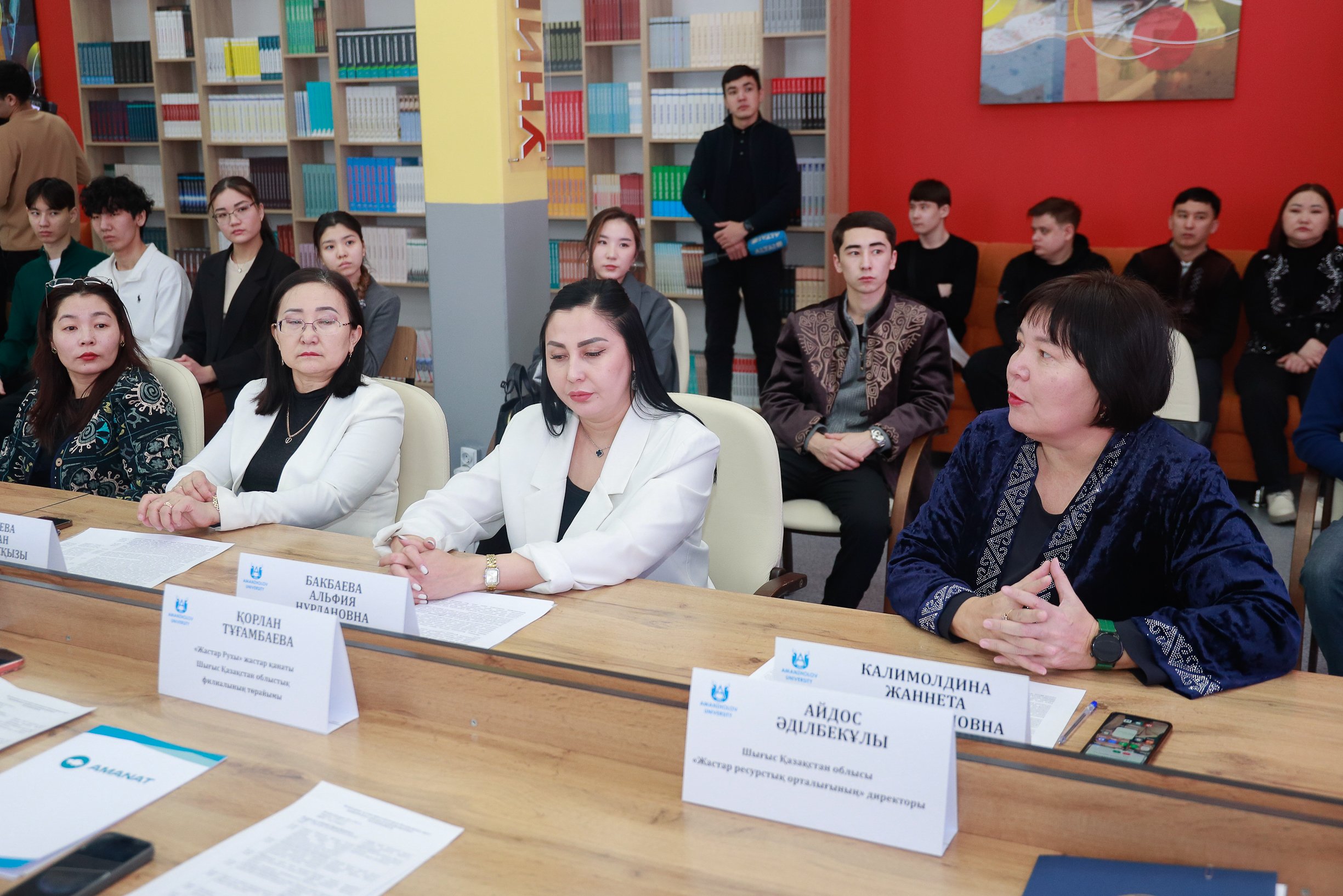 The round table was moderated by Didar Seyitjan. The event opened with a welcome address by Zhanneta Kalimoldina, Vice-Rector for Educational and Social Work. In her speech, she highlighted the importance of the initiatives put forward by the Head of State, including the “Adal Azamat” concept, in youth education and emphasized the role of universities in forming an educated and conscientious generation.