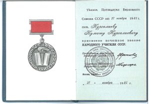 педагог, КСРО Халық мұғалімі (1981), II-дүниежүзілік соғыс ардагері